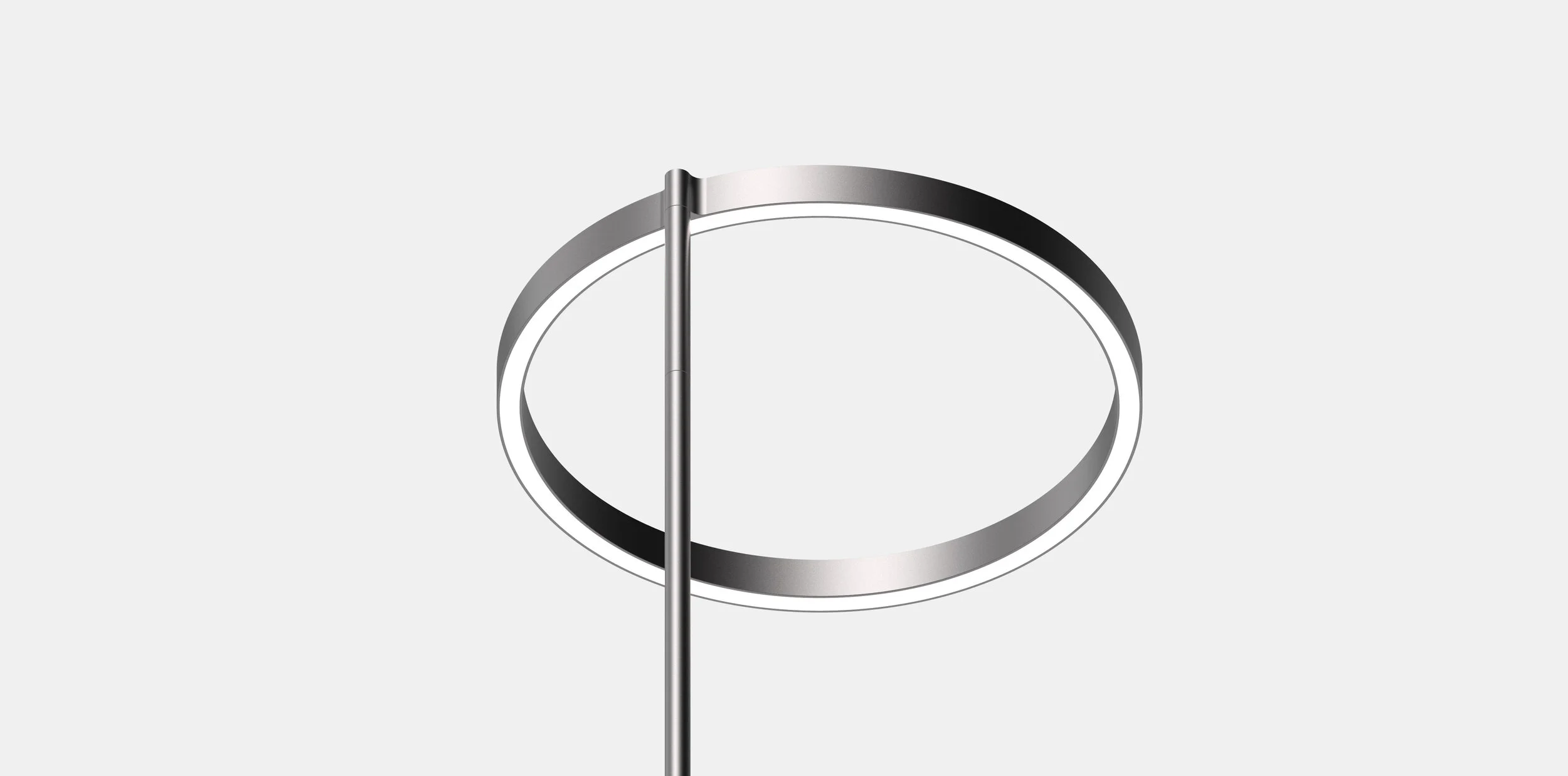 Mudō is a modular high-end lighting system with the propose to be extended, customized and arranged in any way imaginable. The floor lights are minimalist and coherent in their aesthetic, which makes them suitable for any indoor space. The unique feature of this lighting design is the halo ring what illuminates both down and up which allows for a comfortable light-mood and experience. Since the halos emit light only bi-directional the observer cannot be blinded when directly looking at the floor lamp. The ring-element of the overall design therefore functions both as a functional element — lamp shade — and a visually interesting eye-catcher.